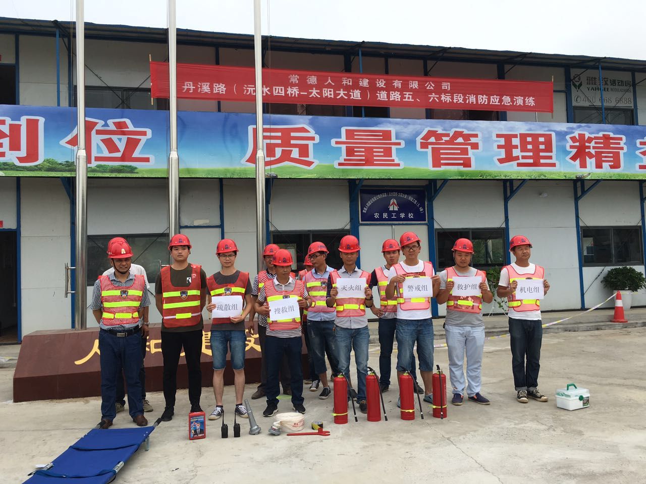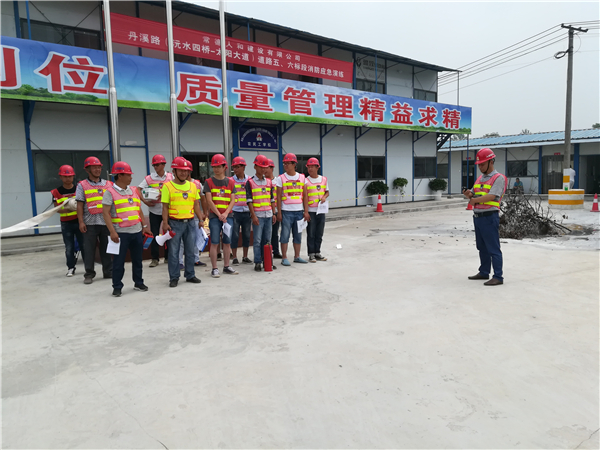 為了檢驗(yàn)公司員工應(yīng)對(duì)火災(zāi)的能力,提高員工的滅火、疏散、自救能力,提高管理人員滅火組織、協(xié)調(diào)、指揮能力,公司于6月22日上午在丹溪路五、六標(biāo)段項(xiàng)目部組織了一場(chǎng)消防應(yīng)急演練。