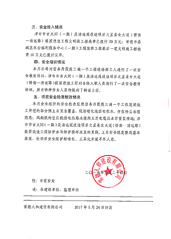 2017年5月施工現(xiàn)場(chǎng)質(zhì)量安全檢查月報(bào)