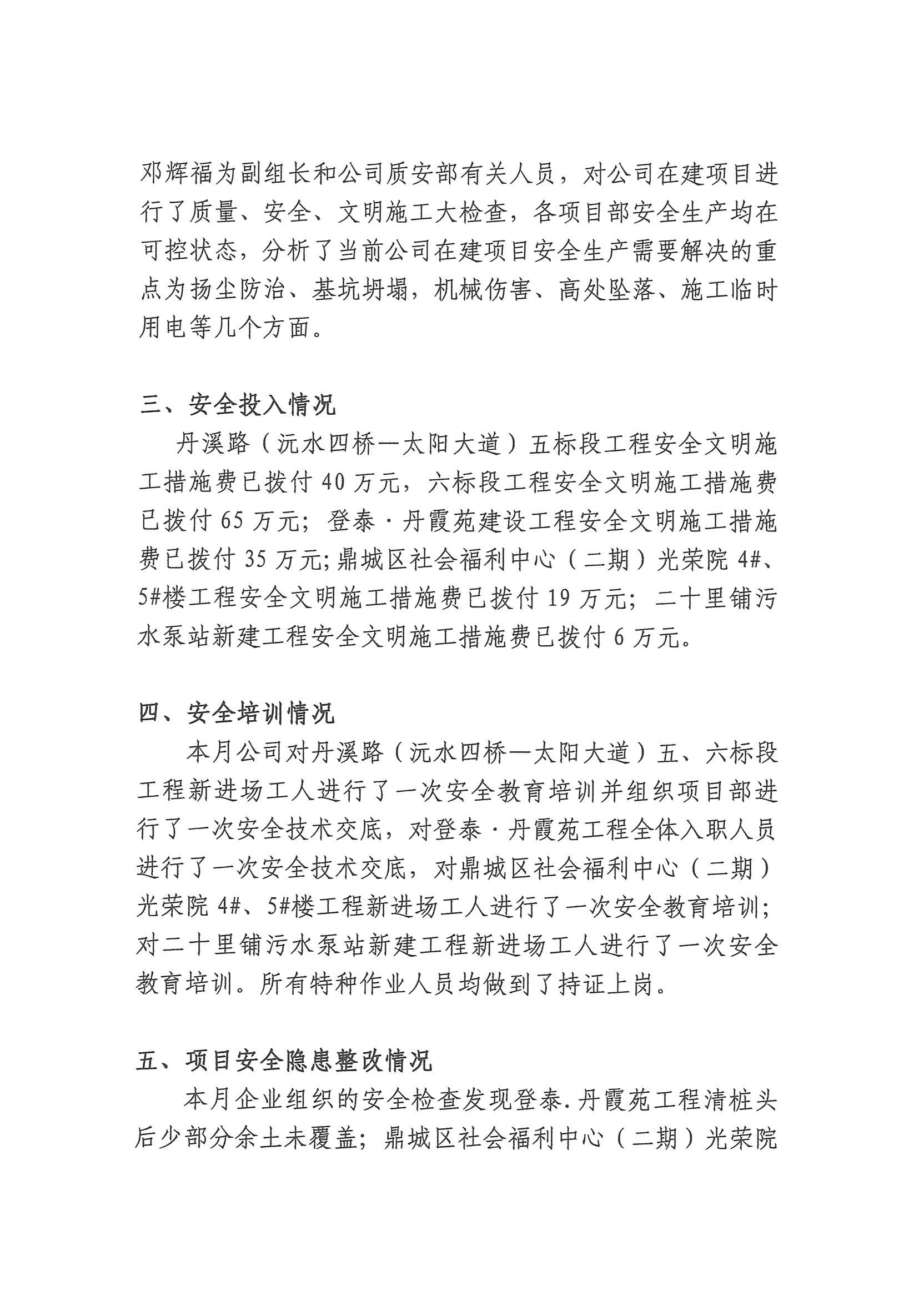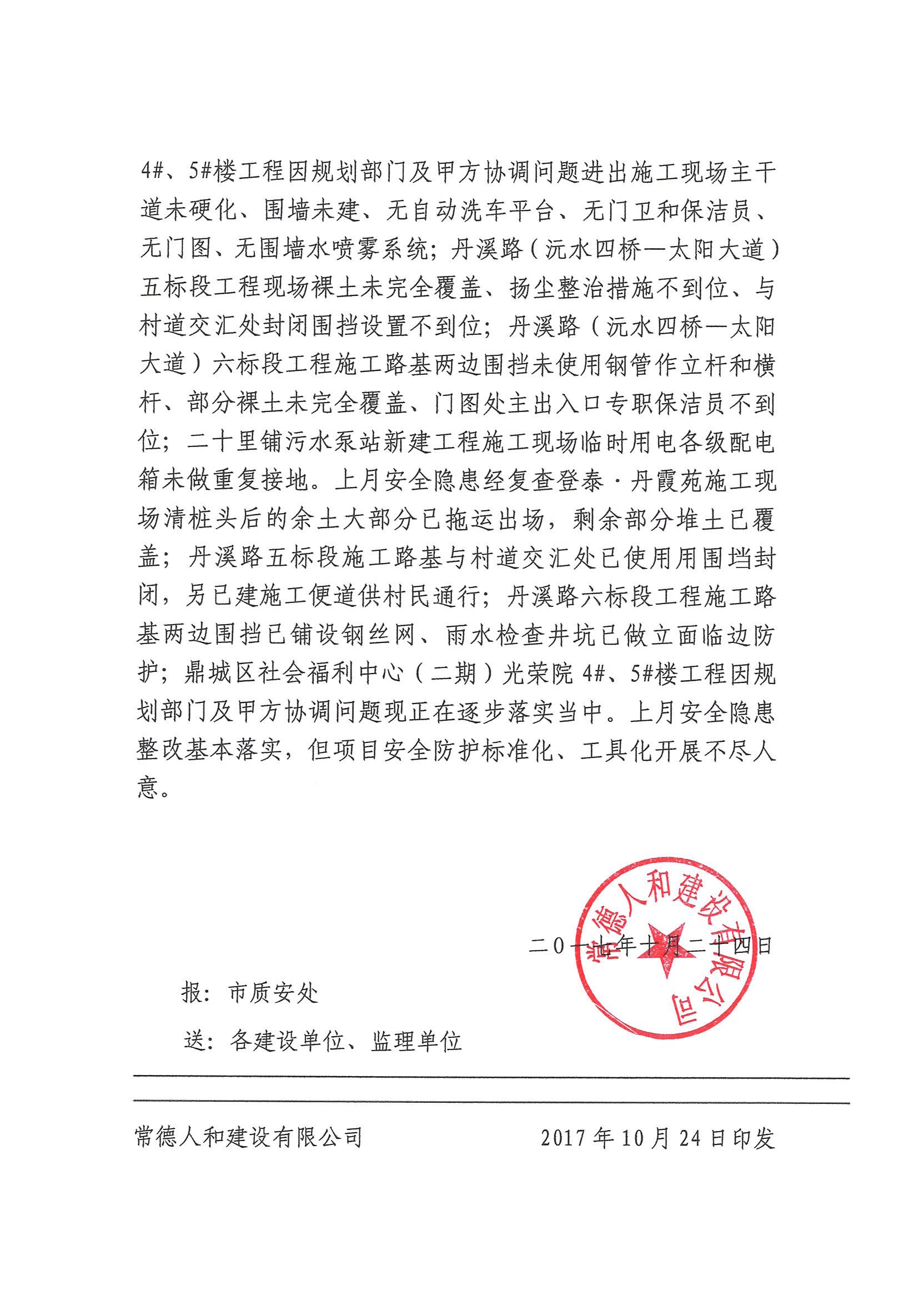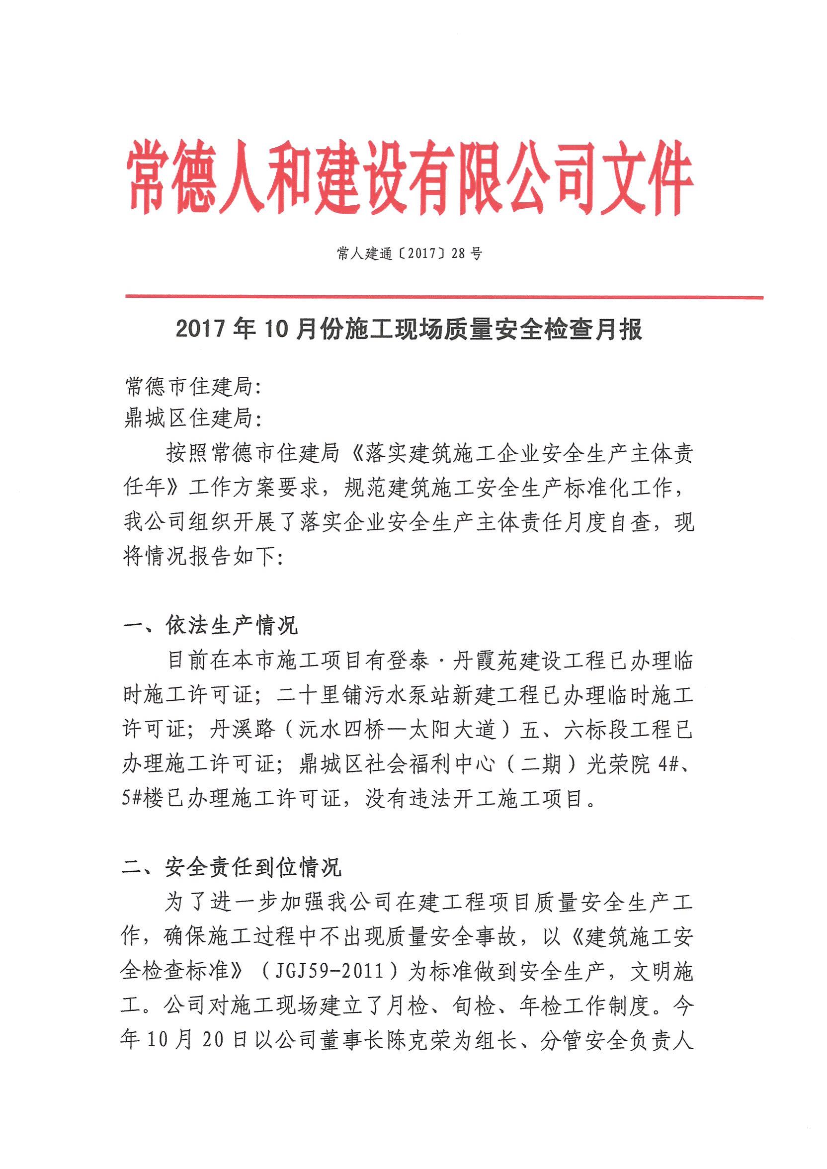 2017年10月施工現(xiàn)場質(zhì)量安全檢查月報(bào)