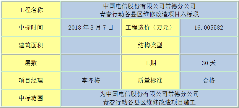 中國電信股份有限公司常德分公司青春行動各縣區(qū)維修改造項目六標(biāo)段