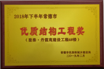 公司登泰丹霞苑建設(shè)工程4#樓榮獲常德市優(yōu)質(zhì)結(jié)構(gòu)工程獎