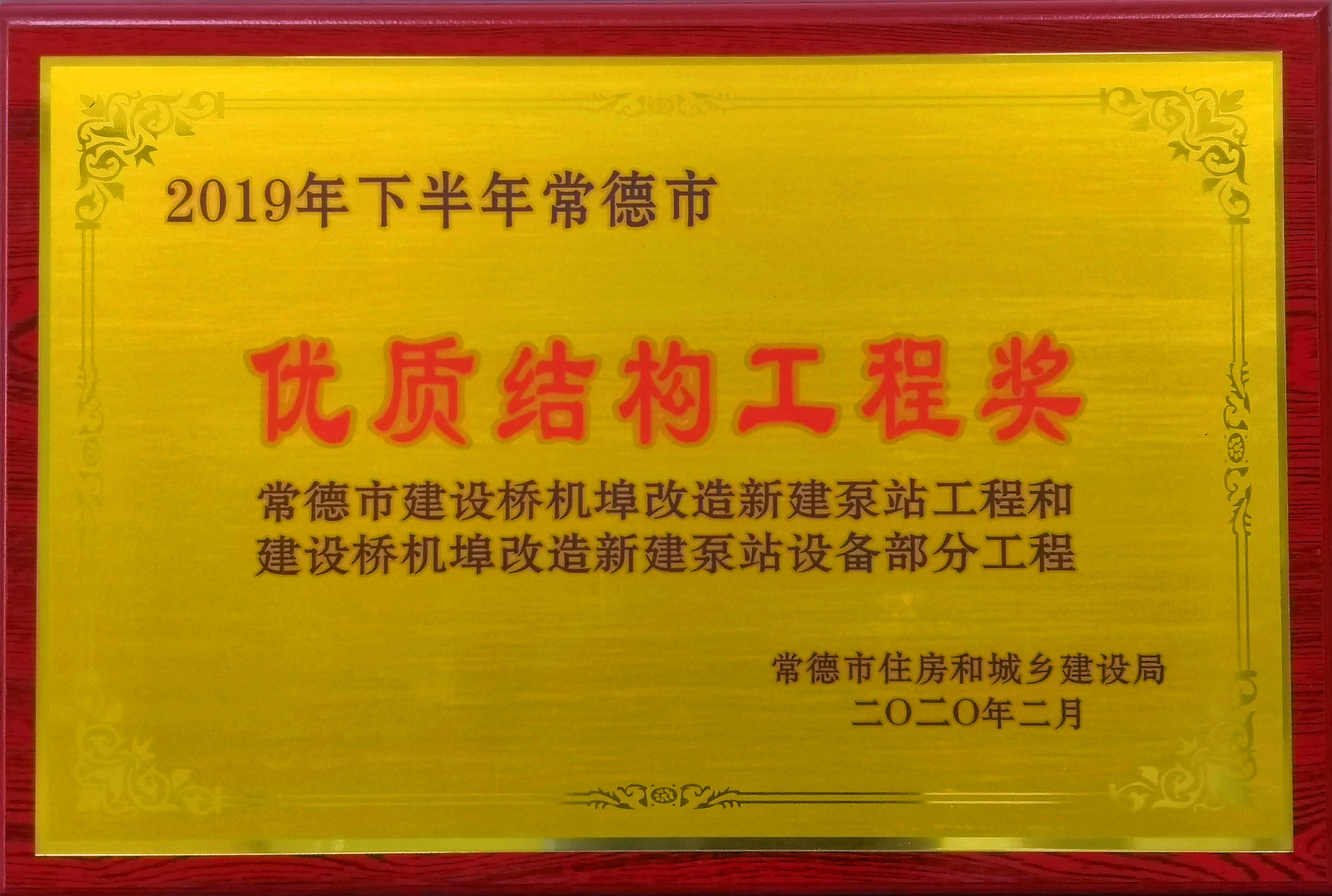 建設(shè)橋機(jī)埠改造工程榮獲常德市優(yōu)質(zhì)結(jié)構(gòu)工程獎(jiǎng)