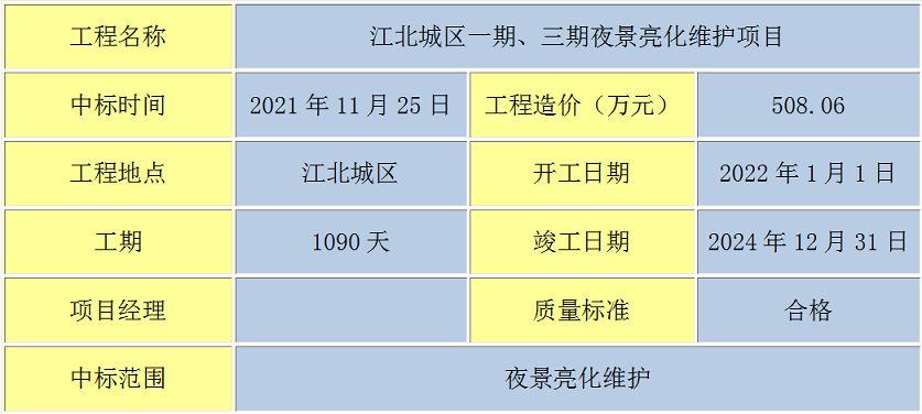 江北城區(qū)一期、三期夜景亮化維護(hù)項(xiàng)目